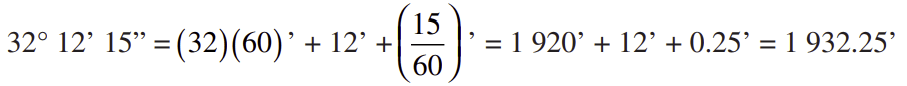 Ejemplo: Convierte 32° 12’ 15” a minutos.