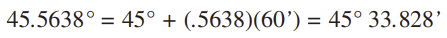 La parte decimal de 45.5638° se multiplica por 60 para convertir a minutos: