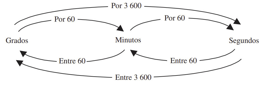 Es la relación que existe entre los grados, minutos y segundos de un ángulo expresado en sistema sexagesimal.